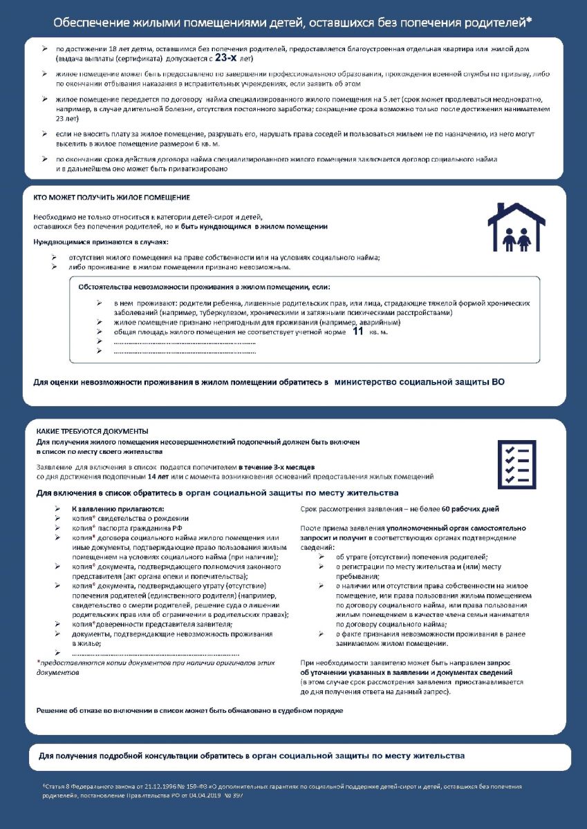 / Памятка об обеспечении жилыми помещениями детей, оставшихся без попечения родителей